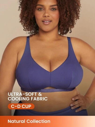 LUVLETTE Plus Natural Wireless Modal Silk Plunge Bra - Blue - View 1