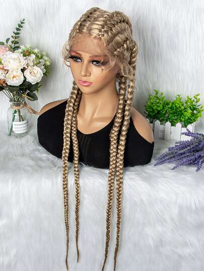 Lace Front Long Braided Synthetic Wig - Gold - View 1