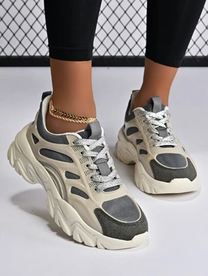 Lace-up Front Chunky Sneakers - Multicolor - View 1