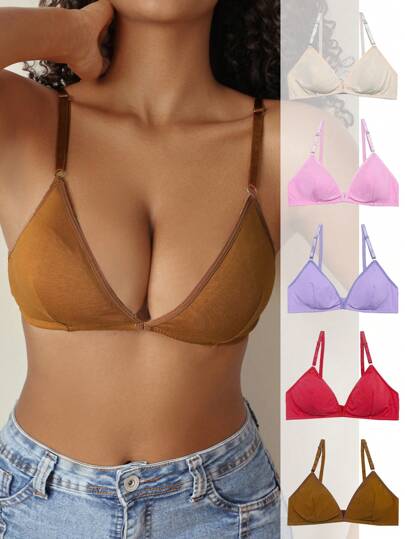 SHEIN Ladies' Plain Wireless Underwear Bra , 5 Pcs - Multicolor - View 1