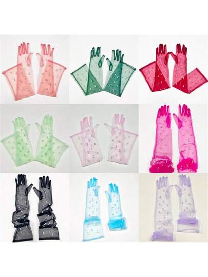 Ladies' Long Transparent Mesh Faux Pearl Gloves For Opera, Evening Party, Stage Performance - Mesh Pearls - View 19