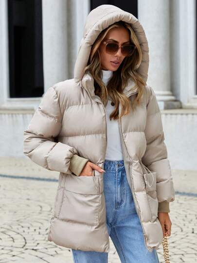 EURMUSE Ladies Regular Fit Padded Jacket - Black and White - View 1