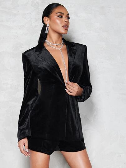 SHEIN BAE Lapel Collar Single Button Velvet Blazer - Black - View 1