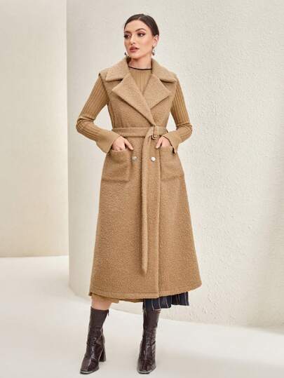 Seusyu Lapel Neck Belted Overcoat - Khaki - View 5