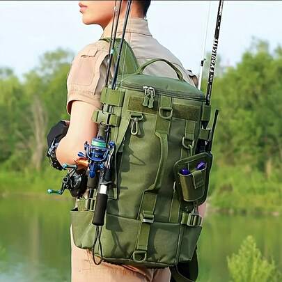 Large-Capacity Fishing Travel Backpack - With Convertible Shoulder Strap, Multiple Zippered Compartments, Portable Outdoor Backpack Suitable For Hunting, Camping, Fishing, Hiking, Outdoor Adventure - Multicolor - View 1