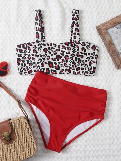 Leopard Print High Waisted Bikini Set - Multicolor - View 1