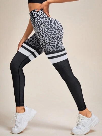 Gameset SHEIN Sport Leopard Print Striped Sports Leggings - Black - View 1
