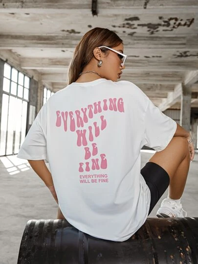 Letter Graphic Drop Shoulder T-Shirt - White - View 5