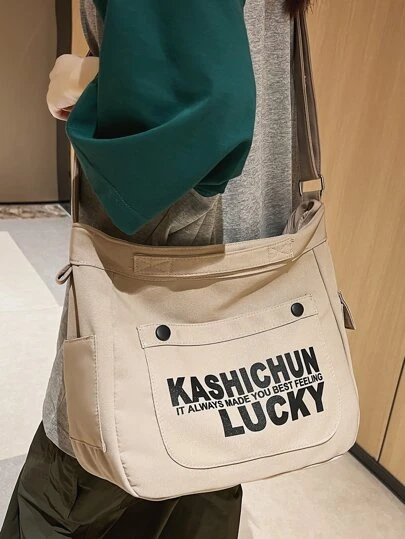 Letter Graphic Large Capacity Hobo Bag School Bag For Graduate, Teen Girls, Freshman, Sophomore, Junior & Senior In College, University & High School, Perfect For Outdoors ,Travel & Back To School - White - View 1
