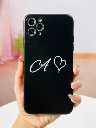 Letter Graphic Phone Case - Black and White - View 1