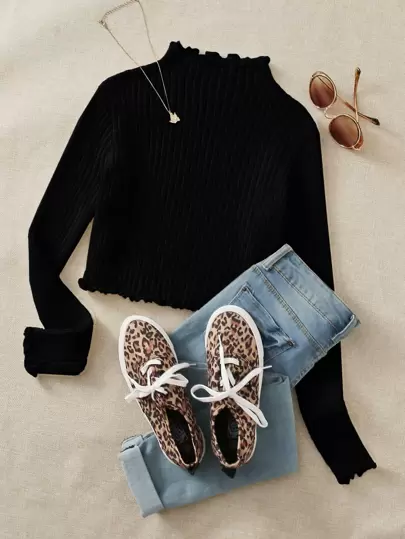 Lettuce Trim Rib-knit Jumper - Black - View 1
