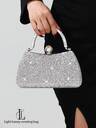 1pc Women's Vintage Metal Handle Clutch Bag, Luxurious Sparkling Crystal Sequin Decor, Metal Detail Box-Style Purse, With Detachable Metal Chain Shoulder Strap, Suitable For Weddings, Parties, Galas, Nightclubs, Formal Occasions, Dress Up ,Wedding