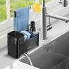 Plastic Kitchen Soap Dispenser With Sink Caddy - Includes Sponge Holder And Soap Pump, Great For Handwashing And Dishwashing, Countertop Storage Solution, Countertop Organizer Box | Modern Kitchen Accessories | Durable Plastic [White-Black Soap Dispenser Cleaning Box Set]