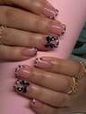 24pcs/Set Retro Leopard Print French Short Square Sweet & Spicy Press-On Nails, Includes 1pc Jelly Gel And 1pc Nail File, Ideal For Ladies & Girls Nail Art For Dates, Parties