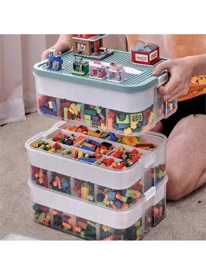 Lislark Storage Boxes With Handle For Building Blocks, 3-Tier Stackable, Adjustable Compartments - Green - View 1