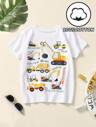 Young Boy Night Glow Cartoon Dinosaur Printed Summer Short Sleeve T-Shirt, Style