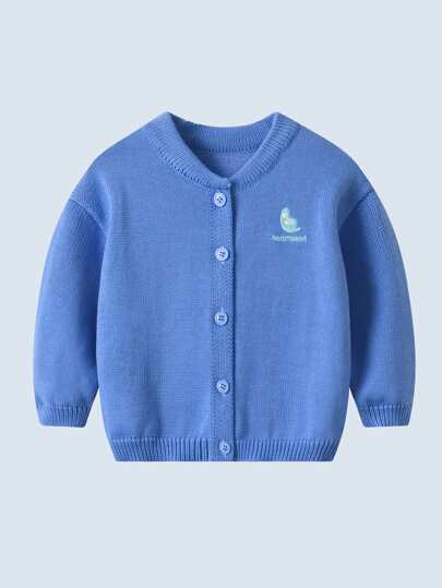 Young Boys' Blue Knit Sweater Cardigan With Cute Embroidery And Buttons, Long Sleeve, Suitable For Spring And Autumn, Warm For Daily - Blue - View 1