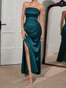 Look Polly Women's Easter Concert Women's Romantic Valentine's Day Costume Suitable For Spring/Summer Wedding Carnival Single Party Banquet Temperament Sexy And Elegant Style Solid Color Slimming Bareback Wrinkle Long Strapless Ball Medium To Long Premium Ink Green Dress Long Pencil Skirt