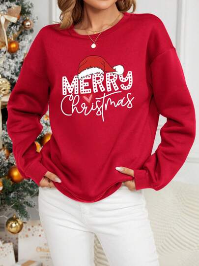 SHEIN LUNE Loose Fit Christmas Printed Women's Sweatshirt - Red - View 1