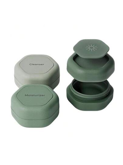 MYYE Travel Containers Basic Skincare Set Magnetic Containers With LidsCarry On Travel Entials For Women Men 3 Small Capsules 0.56oz Cleanser Moisturizer And SunIcon Labels Sand - Basic Set+Evergreen - View 1