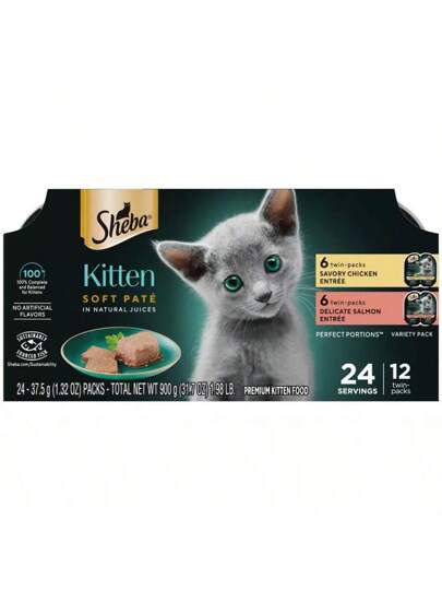 Portions Salmon, Chicken And Seafood Flavor Soft Pate Kitten Wet Food - 31.7oz/12ct - 1 - View 10