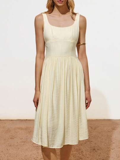 Lumivelle Women's Elegant Office Minimalist Back Cross Racerback Dress With Textured Fabric - Apricot - View 1