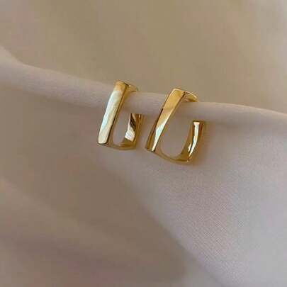Luxury Gold Hoop Earrings For Women, Minimalist Design, New Arrival - U-shaped Earrings - View 1