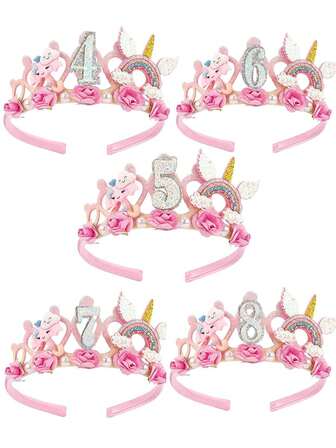 2pcs Unicorn Wing Fairy Wand, Children Floral Decor Birthday Crown With Numbers 4/5/6/7/8, Mermaid Princess Birthday Set, Teenage Birthday Party Outfit & Props, Outdoor Party Photo Headband
