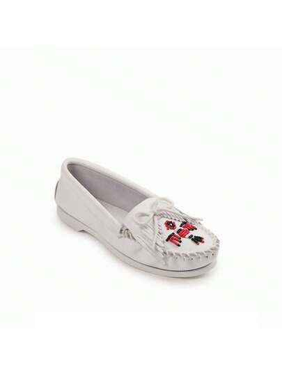 Minnetonka Women's Thunderbird Boat Sole Moccasin In White Smooth Leather - White Smooth Leather - View 1