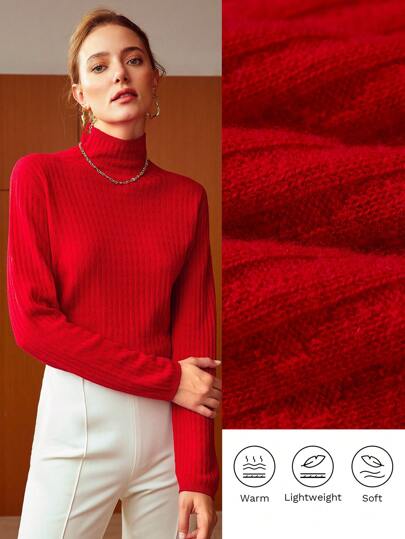 MOTF PREMIUM 100% PURE WOOL MOCK-NECK SWEATER - Red - View 1
