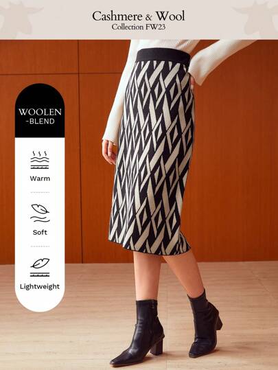 MOTF PREMIUM GEO WOOL-BLEND KNIT MIDI SKIRT - Multicolor - View 1