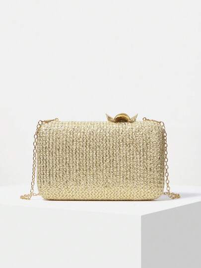 MOTF PREMIUM GLITTER CHAIN DETAIL SQUARE CLUTCH - Gold - View 1