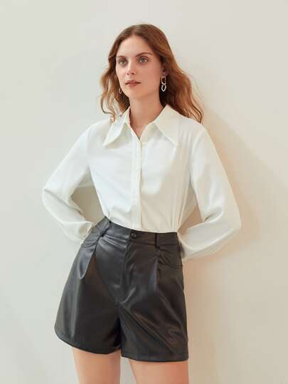 MOTF PREMIUM PU LEATHER STRAIGHT LEG SHORTS - Black - View 1