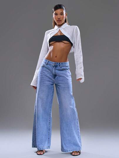 MUSERA Low Rise Wide Leg Oversized Jeans Spring, Summer, Streetwear, Y2k, Cool Girl,City Muse - Baby Blue - View 1