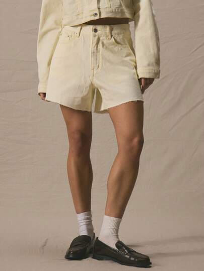 MUSERA Mid Rise Frayed Hem Denim Shorts Only Spring Summer Cute Vacation 90's Y2k - Yellow - View 1