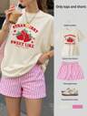 Be Still & Know Printed Loose Short Sleeve Top And Striped Shorts Set, Summer Top, Summer Shirt, Casual Women Outfit, Chinese New Year, Lunar New Year, Year Of The Horse, Spring Festival, Happy New Year, Valentine's Day, Valentine's Gift, Gift For Her