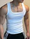 Manfinity Dauomo Men's Summer Solid Color Crew Neck Ribbed Casual Tank Top