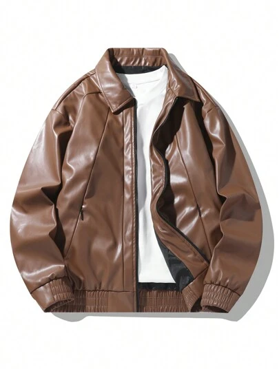 Manfinity EMRG 1pc Men's Plain Front Zip Up Long Sleeve Casual Jacket - Brown - View 1