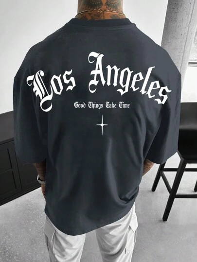 Manfinity LEGND Men Letter Graphic Printed Short Sleeve T-Shirt, For Going Out, For Friends, 2000s Style - Grey - View 1