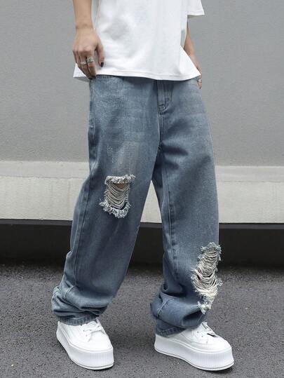 Manfinity EMRG Men's Loose Fit Casual Denim Jeans With Pockets And Wide-Leg Design - Medium Wash - View 1