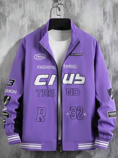Manfinity Homme Men Embroidery Letter Pattern Striped Trim Jacket Without Tee - Purple - View 1