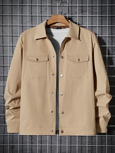 Manfinity Men Flap Pocket Button Front Jacket Without Tee - Khaki - View 4