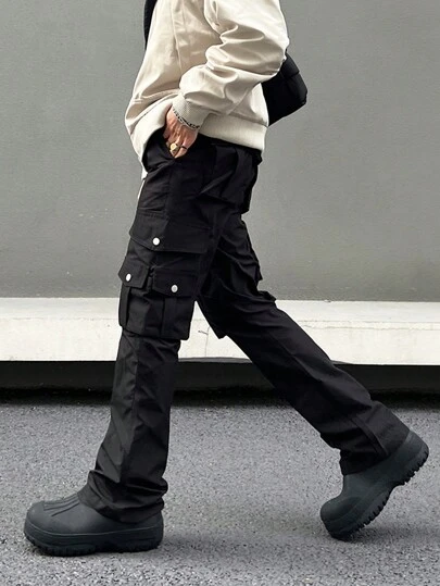 Manfinity Roghcode Men's Side Pocket Cargo Loose Pants - Black - View 1