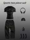 Manfinity Sport Corelite Men's Contrast Color Print T-Shirt And Pants Sports Suit Breathable Sweat-Wicking Comfortable Slim Fit For Workout Training Gym Set Goth Gym Outfit Gothic Workout Clothes Men Gym Clothes Halloween Sportwear
