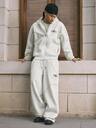 AXEPEAK Men Letter Embroidery Quarter Zip Coral Hoodie Fluffy Black Letter Long Sleeve Thick Casual Sherpa Hoodie, For Friends, Husband, Boyfriend Gifts