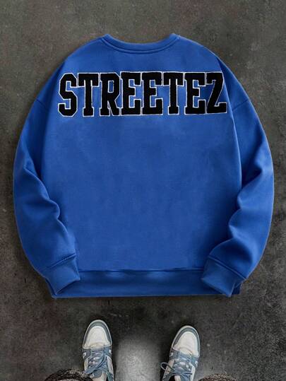 Manfinity VCAY Men's Embroidered Ribbed Crew Neck Long Sleeve Sweatshirt, For Fall Winter - Blue - View 4
