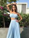 Manon Tanti Women's 2pcs Solid Brown Minimalist Daily Twist Front Tube Top And Shorts Set, Fitted