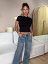 Manon Tanti 1pc Women Front Button Low Waist Leopard Print Washed Straight Leg Jeans, Casual Everyday Wear