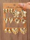 2-12pcs/Set Fashion Starfish, Shell Earrings Set, Suitable For Summer Travel And Holiday Wear