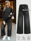 SHEIN Maternity Casual Loose Straight Leg Blue Jeans Women Baggy Jeans Casual Loose Blue Women's Jeans Thanksgiving Women Wide Waist Mom Jeans